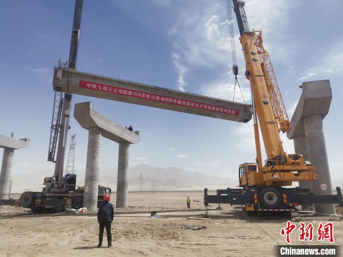 記者17日從中鐵七局集團(tuán)有限公司(以下簡稱“中鐵七局”)獲悉,日前,由該公司承建的國道109宗格公路項目跨青藏鐵路橋首片預(yù)制箱梁順利完成架設(shè),標(biāo)志著該項目預(yù)制箱梁架設(shè)施工拉開序幕。