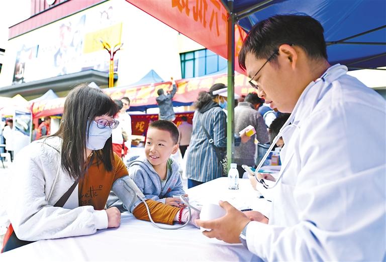 圖為活動(dòng)現(xiàn)場,醫(yī)生在為市民測量血壓。 西藏日報(bào)記者 王敏 攝