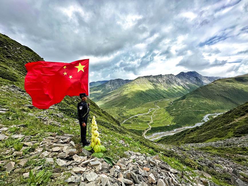 西藏山南曲桑邊境檢查站的民警們在巡邏路上發(fā)現(xiàn)了它,這種植物扎根10年至45年,只為一生開一次花,它矗立在海拔5000米的高山之巔,屹立挺拔,花開燦爛,就像山下檢查站的西藏移民管理警察。