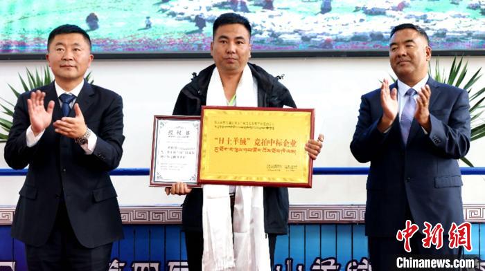圖為為“日土羊絨”競拍中標企業(yè)頒發(fā)授權(quán)書。日土融媒體中心供圖