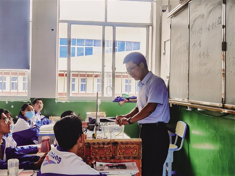 “李老師非常平易近人、和藹可親,他會帶著我們做化學(xué)實(shí)驗(yàn),在實(shí)驗(yàn)中可以了解到很有趣的知識,讓我們更加快樂地學(xué)習(xí)。”拉薩市第八中學(xué)九年級二班的同學(xué)們表示,李老師關(guān)心每個人的學(xué)習(xí)狀況,如果有人在考試中表現(xiàn)不佳,李老師會親自講解,并在試卷上標(biāo)注出需要改正的錯誤。下課后,李老師也會認(rèn)真傾聽學(xué)生們的想法和感受,與孩子們互動交流。