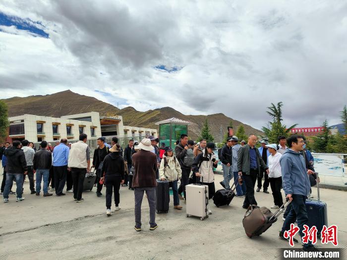 9月23日,乘坐高原復(fù)興號(hào)動(dòng)車組列車的乘客抵達(dá)拉薩火車站。中新社記者 江飛波 攝