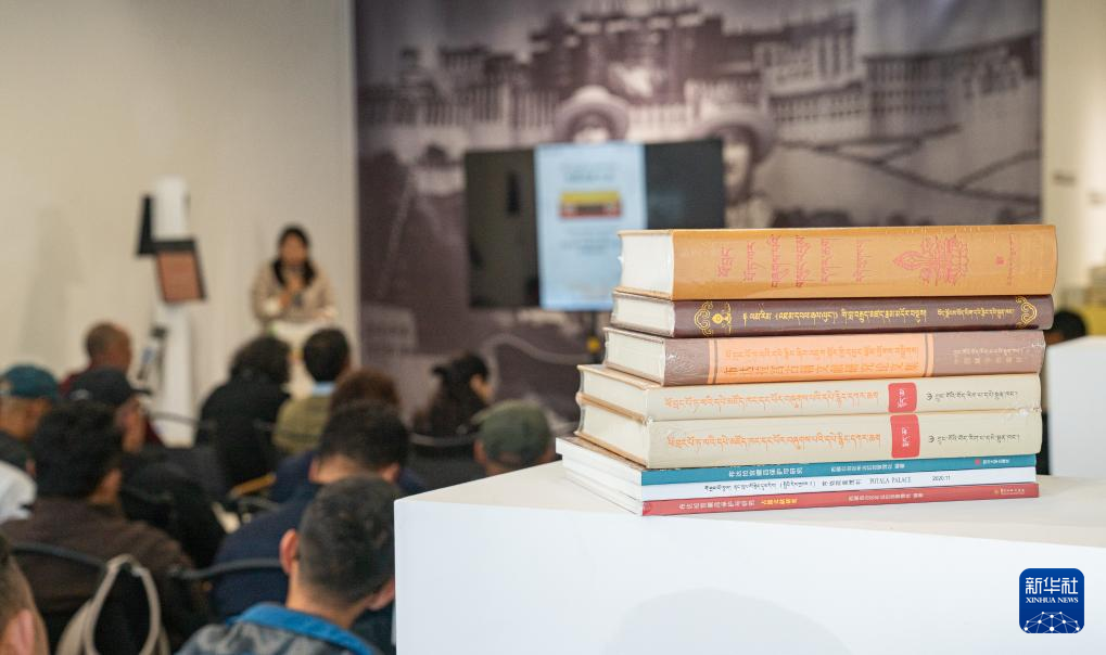 世界文化遺產(chǎn)布達(dá)拉宮9月28日最新發(fā)布的古籍文獻(xiàn)研究成果系列叢書。新華社記者 丁增尼達(dá) 攝