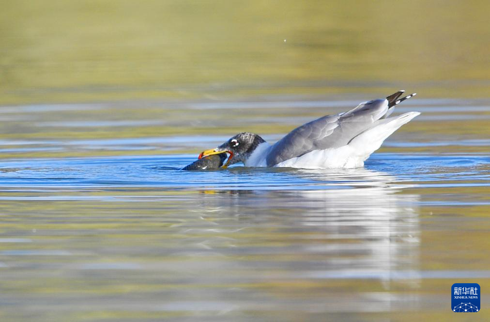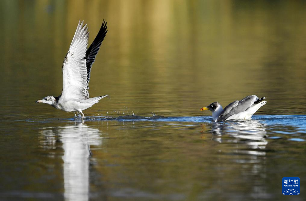 金秋十月,漁鷗在西藏拉薩市國家級自然保護(hù)區(qū)拉魯濕地里嬉戲,惹人喜愛。