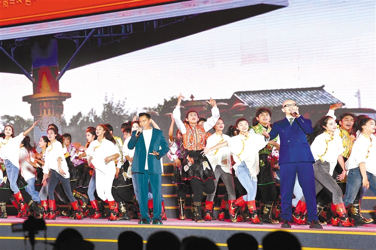 西藏自治區(qū)歌舞團、林芝市民族藝術(shù)團表演的開場歌舞《扎西德勒》。記者 洛桑 攝