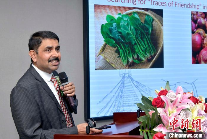 說著一口流利普通話的尼泊爾研修班學員代表、尼中文教協會秘書長蒂利普·普拉薩德·阿查利亞就“尼中關系的不同維度”發(fā)言。他從飲食、建筑、文化、歷史等多方面闡述尼中兩國友好的悠久歷史。他說:“兩國的關系具有更廣闊、更親近、更自然、更加充滿活力的特點,應該成為‘親戚’。”