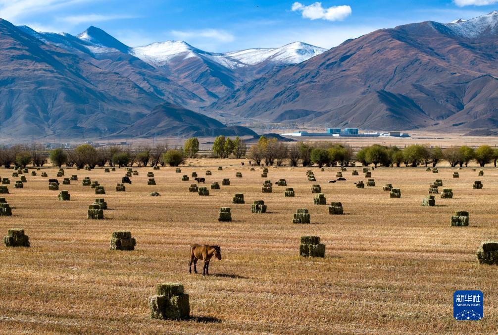 這是10月24日在拉薩市林周縣強(qiáng)嘎鄉(xiāng)曲嘎強(qiáng)村拍攝的已打包好的牧草(無(wú)人機(jī)照片)。新華社記者 姜帆 攝