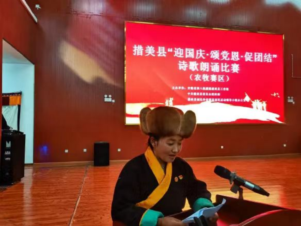 圖為措美縣舉辦“迎國慶 頌黨恩 促團(tuán)結(jié)”詩歌朗誦比賽。(受訪者供圖)