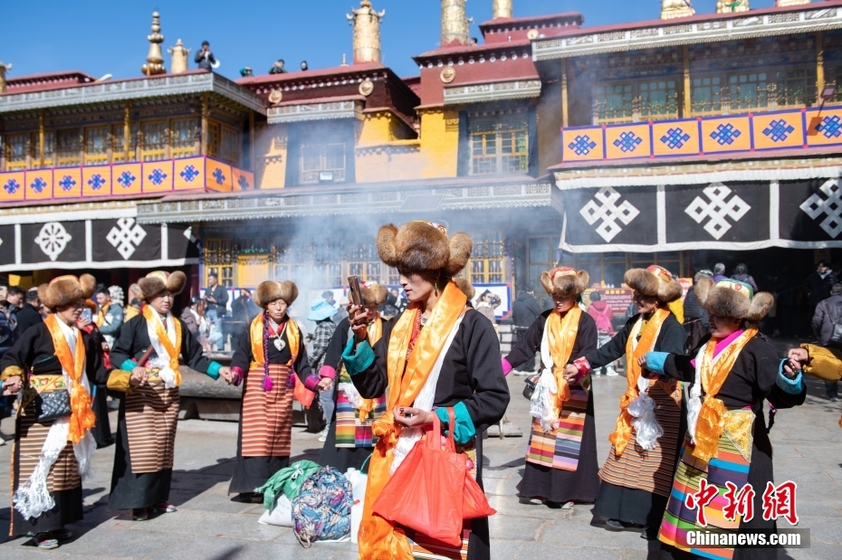 11月15日,西藏拉薩,拉薩婦女在扎基寺跳起傳統(tǒng)舞蹈,迎“仙女節(jié)”。“仙女節(jié)”即吉祥天母節(jié),藏語(yǔ)稱“白來(lái)日追”。相傳藏傳佛教最高護(hù)法神之一班丹拉姆的女兒白拉姆,不顧母親的反對(duì)與赤尊贊私定終身,班丹拉姆一怒之下將赤尊贊趕到拉薩河南岸,規(guī)定二人僅每年的藏歷十月十五日相見。中新社記者 貢嘎來(lái)松 攝