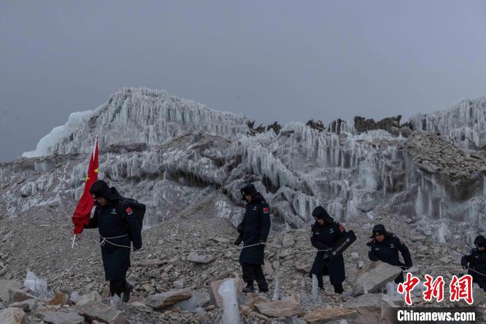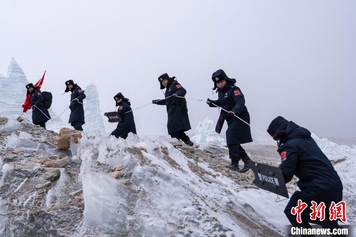 圖為普瑪江塘邊境派出所在海拔5600米的崗布冰川開展邊境巡邏。蔣美靈  攝