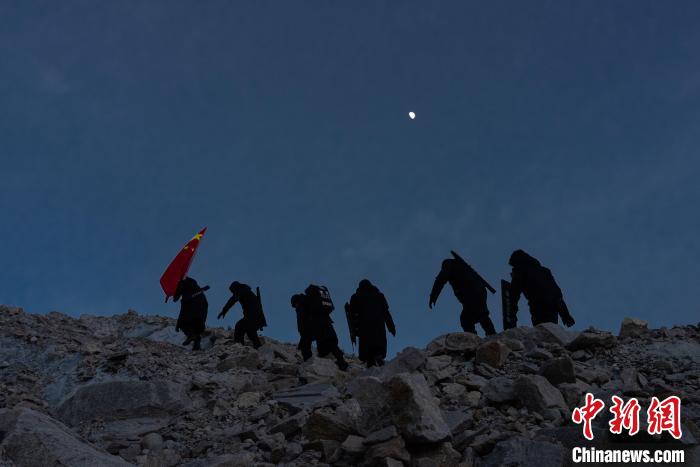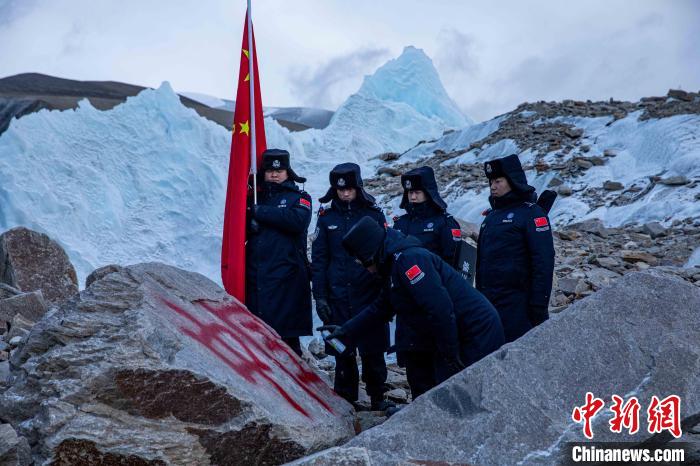 圖為普瑪江塘邊境派出所民警在海拔5600米的崗布冰川噴涂中國。郭遠(yuǎn)敬  攝