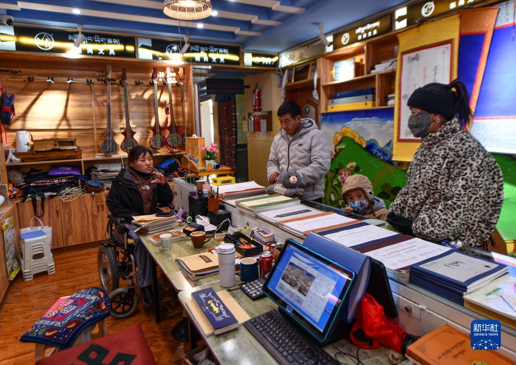29歲的拉薩姑娘卓嘎因小兒麻痹落下殘疾,她在覺列的公司里學(xué)習(xí)了藏文書法,還成為拉薩八廓商城一個(gè)藏文書法和扎念琴體驗(yàn)班的負(fù)責(zé)人,最多的時(shí)候要為150名孩子授課。現(xiàn)在她每月稅前收入有大約9000元。