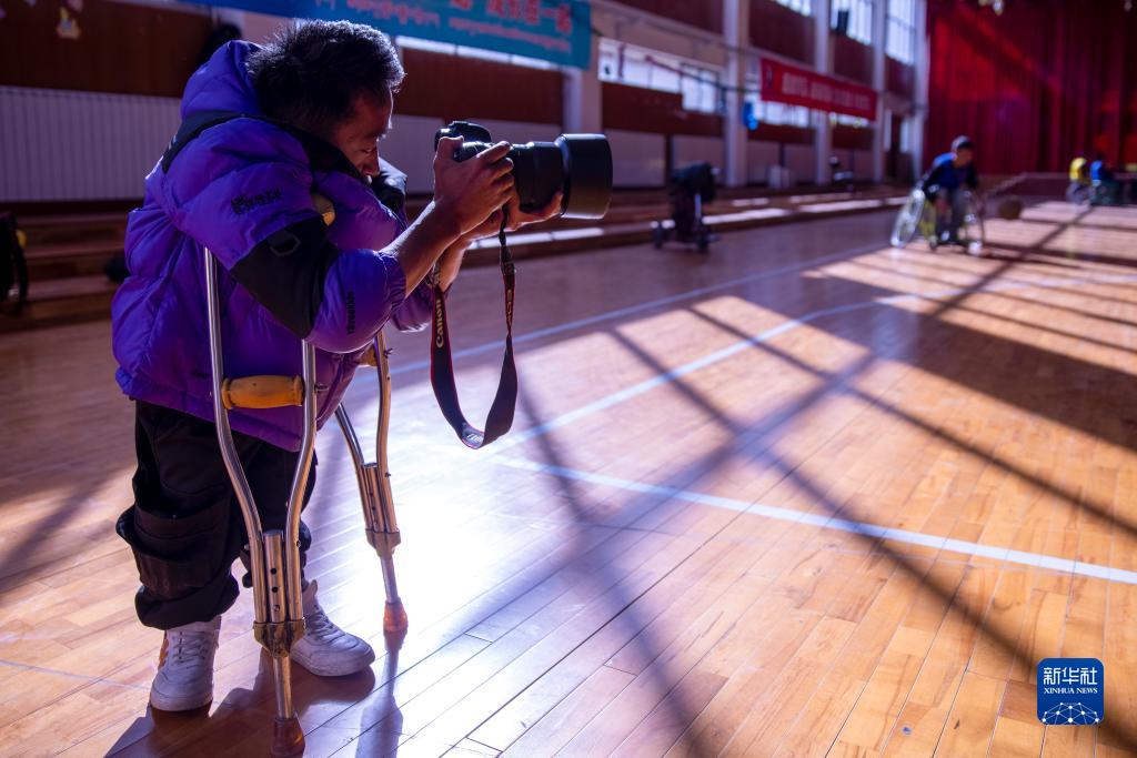 拉巴頓珠在拍攝輪椅籃球訓(xùn)練(11月26日攝)。新華社記者 姜帆 攝
