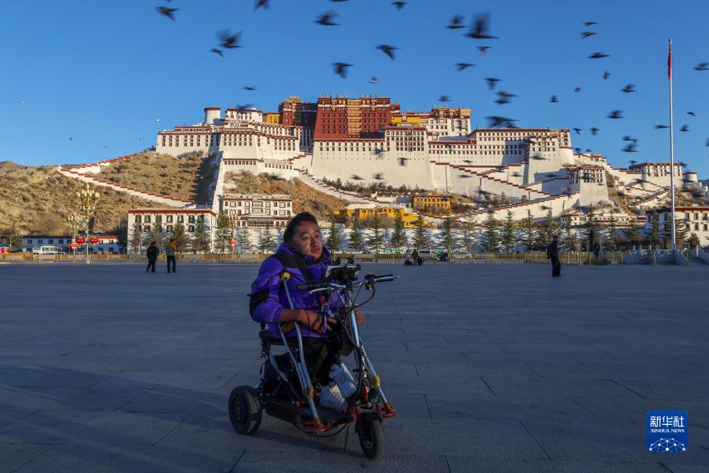拉巴頓珠在清晨的布達(dá)拉宮廣場(chǎng)(12月2日攝)。新華社記者 姜帆 攝