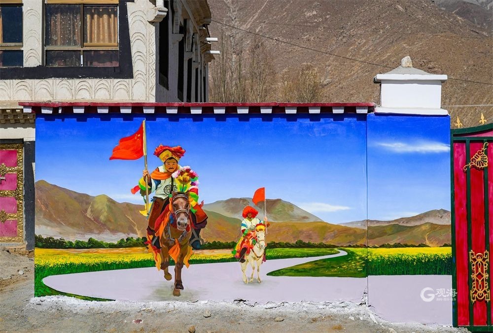 鄉(xiāng)村振興、民族團(tuán)結(jié)、道路安全、移風(fēng)易俗、傳統(tǒng)文化、現(xiàn)代文明、高原特色……各式各樣的場(chǎng)景,現(xiàn)在已經(jīng)出現(xiàn)在了桑珠孜區(qū)東嘎鄉(xiāng)、聶日雄鄉(xiāng)、曲美鄉(xiāng)、納爾鄉(xiāng)部分鄉(xiāng)村的道路兩旁。一幅幅栩栩如生的手繪墻畫(huà),“爬上”了錯(cuò)落有致的藏式小樓,“登上”了一座座藏式院落的院墻,成為一道道亮麗的風(fēng)景線。在干凈整潔的鄉(xiāng)村道路旁,錯(cuò)落有致的農(nóng)家庭院上,粉刷一新的墻面上色彩艷麗的大型墻繪以直觀的畫(huà)面和村民喜聞樂(lè)見(jiàn)的形式,將鄉(xiāng)村振興、民族團(tuán)結(jié)、移風(fēng)易俗等內(nèi)容與農(nóng)村景觀有機(jī)結(jié)合,讓一堵堵“牛糞墻”有了新活力吸引著過(guò)往路人的目光。一幅幅栩栩如生的畫(huà)面、一段段民族團(tuán)結(jié)的故事,與鄉(xiāng)村環(huán)境融為一體,形成了“村中有畫(huà)、畫(huà)中有村”的整體風(fēng)貌;一面面文明和諧、多彩絢麗的彩繪墻,猶如一張張靈動(dòng)的文明標(biāo)簽,將黨的方針政策、藏族同胞的幸福生活活靈活現(xiàn)地展示在墻上,不僅扮靚了鄉(xiāng)村美景,也傳遞了向上向善向美的正能量,處處都能讓人感受到美麗鄉(xiāng)村文明發(fā)展的濃郁氣息。