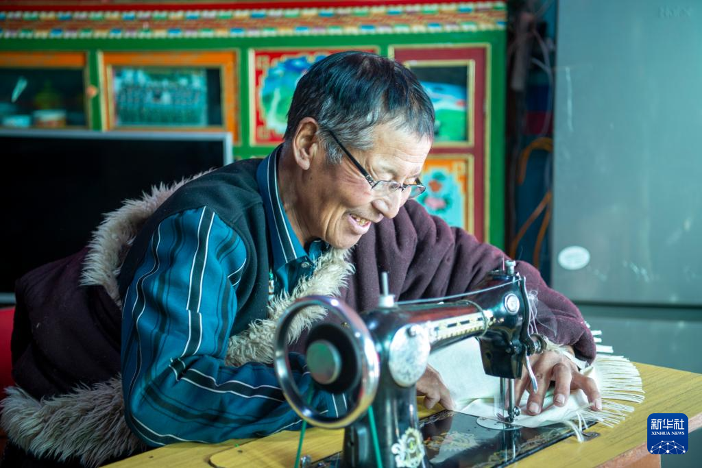 12月20日,古曲扎巴在家中免費(fèi)幫村民縫制物品。新華社發(fā)(旦增努布 攝)