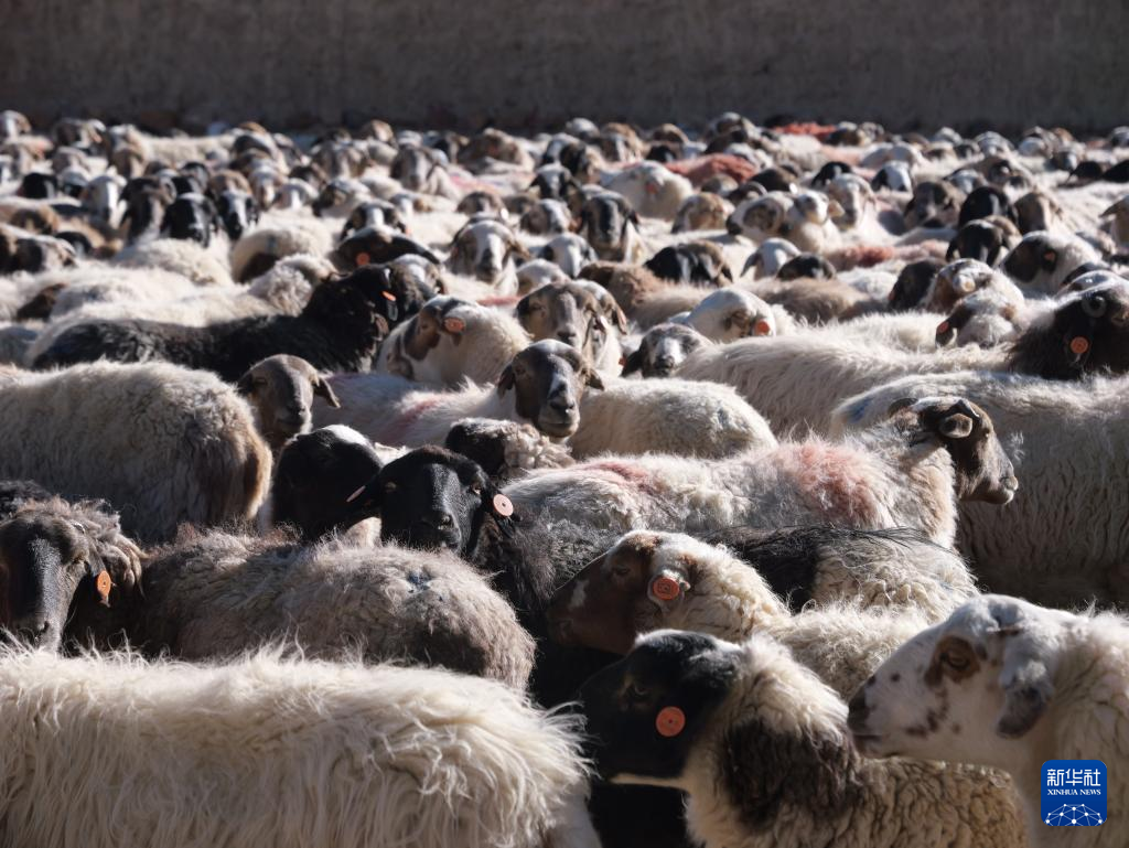 隨著標準化的推行,如今貢巴村的羊羔都打上了耳標(12月20日攝)。新華社發(fā) 黃智琪 攝