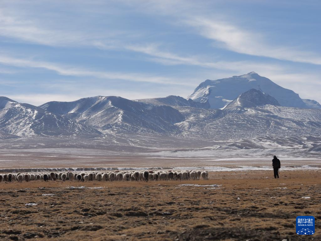 當?shù)啬撩裨谘┥侥_下放牧(12月20日攝)。新華社記者 洛卓嘉措 攝