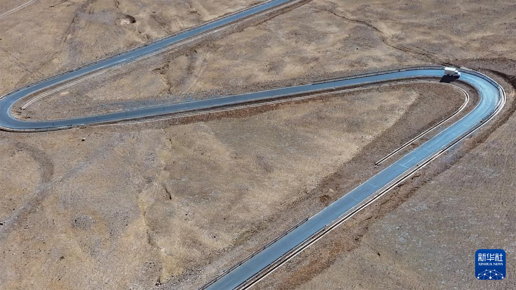 申扎縣供銷合作社為馬躍鄉(xiāng)貝嘎四村偏遠(yuǎn)鄉(xiāng)鎮(zhèn)果蔬配送試點(diǎn)項目直銷點(diǎn)配送新鮮果蔬的貨車,行駛在盤山公路上,這個村距離申扎縣城150公里(無人機(jī)照片,1月5日攝)。新華社記者 旦增尼瑪曲珠 攝
