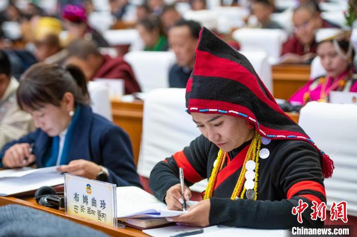 圖為西藏政協(xié)委員在開(kāi)幕會(huì)現(xiàn)場(chǎng)。貢嘎來(lái)松 攝