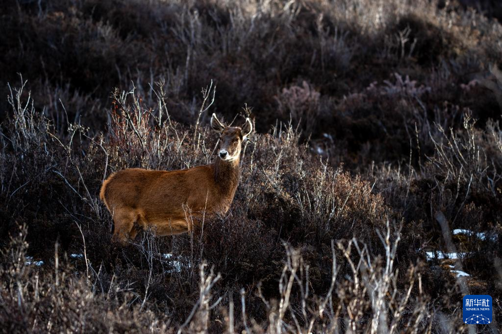 這是在西藏山南市桑日縣拍攝的馬鹿(1月14日攝)。新華社記者 旦增尼瑪曲珠 攝