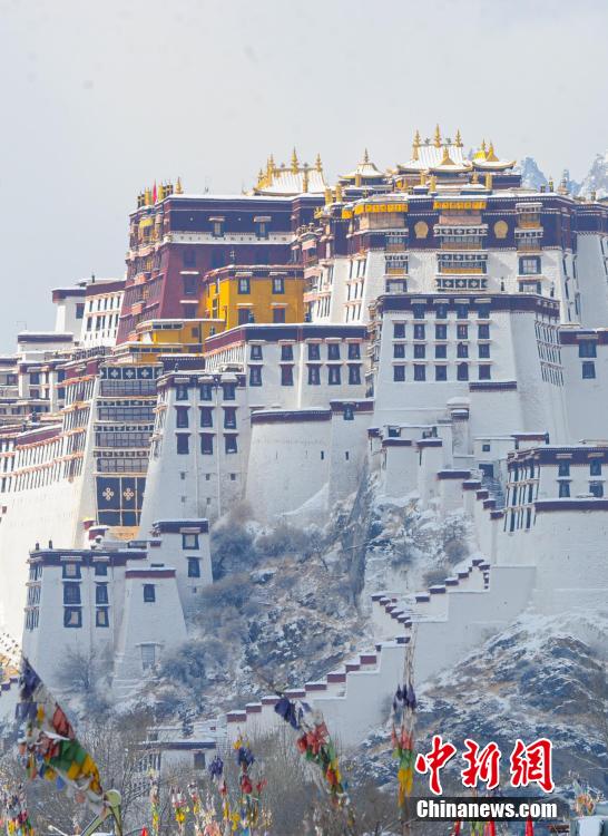 1月18日,西藏拉薩迎來(lái)一場(chǎng)大雪,雪后信眾在八廓街轉(zhuǎn)經(jīng)出行。布達(dá)拉宮銀裝素裹,分外美麗。圖為雪后信眾轉(zhuǎn)經(jīng)出行。