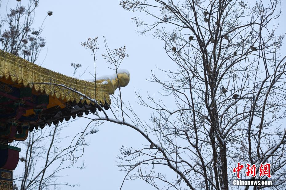 圖為雪后信眾在拉薩市大昭寺前朝拜。