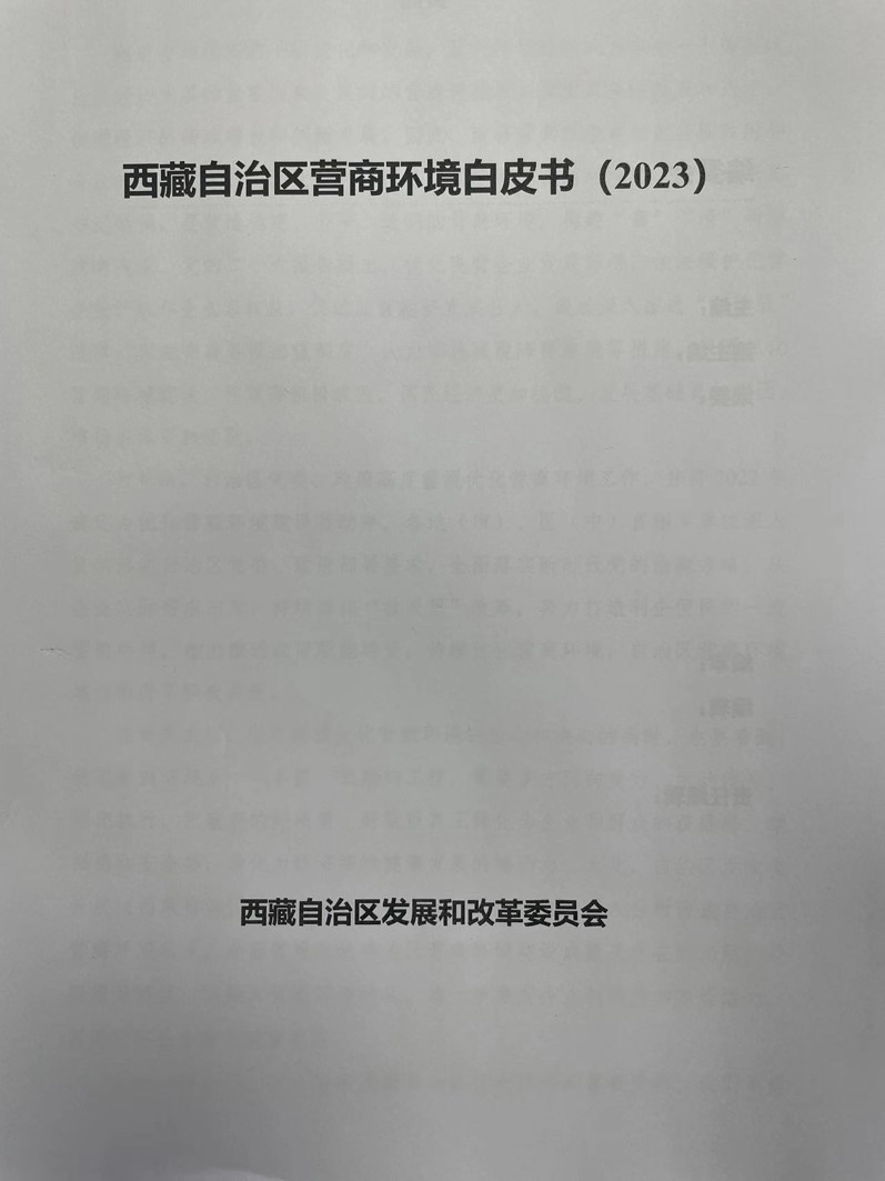 2024年1月23日,《西藏自治區(qū)營商環(huán)境白皮書(2023)》發(fā)布,這是西藏自治區(qū)首次發(fā)布營商環(huán)境白皮書。西藏聚焦“審批事項最少、審批時限最短、審批流程最優(yōu)、審批服務(wù)最好”目標,持續(xù)深化“放管服”改革,營商環(huán)境改革成效顯著。