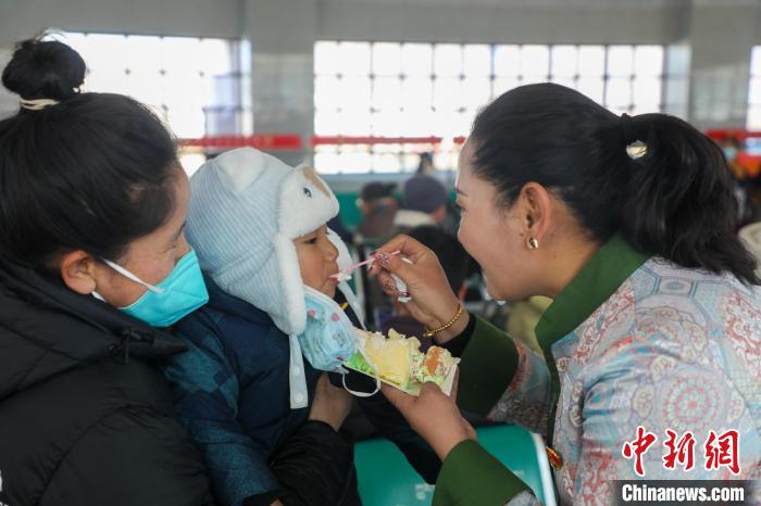 春運(yùn)首日,拉薩車務(wù)段在日喀則站候車大廳開(kāi)展“溫馨出行 文明出行”主題活動(dòng),火車站青年職工帶來(lái)了日喀則當(dāng)?shù)靥厣顝棾?,并為旅客送上溫暖的甜茶,和旅客一起分享蛋糕慶祝日喀則站第十個(gè)春運(yùn)等活動(dòng),營(yíng)造出喜迎新春的節(jié)日氛圍。