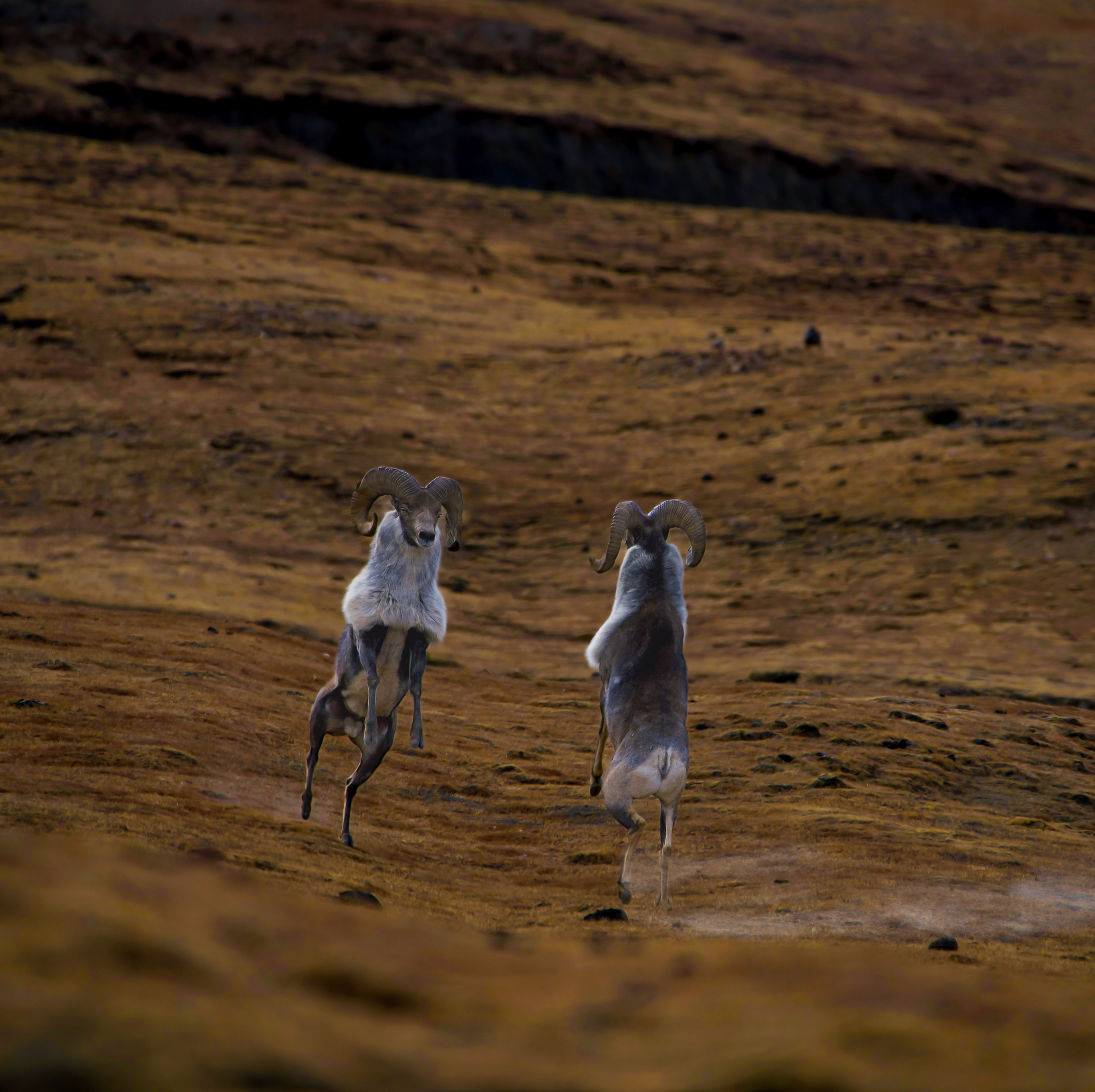 爭強(qiáng)斗狠的盤羊,國家一級保護(hù)動物。