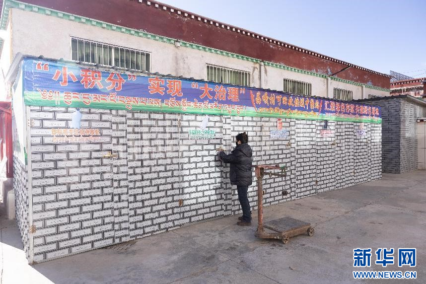 圖為昌嘎村可回收垃圾中轉站,每周一群眾對村內(nèi)垃圾進行清理回收之后,統(tǒng)一在此進行分類稱重,最終將積分情況填入農(nóng)戶的“綠色銀行存折”中(2月2日攝)。新華網(wǎng)發(fā) 李騰 攝