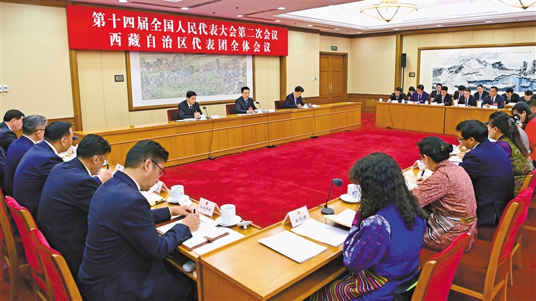 3月6日,西藏代表團(tuán)舉行全體會(huì)議,傳達(dá)學(xué)習(xí)習(xí)近平總書記在參加十四屆全國(guó)人大二次會(huì)議江蘇代表團(tuán)審議時(shí)的重要講話精神,繼續(xù)審議政府工作報(bào)告,審查計(jì)劃報(bào)告和草案、預(yù)算報(bào)告和草案。