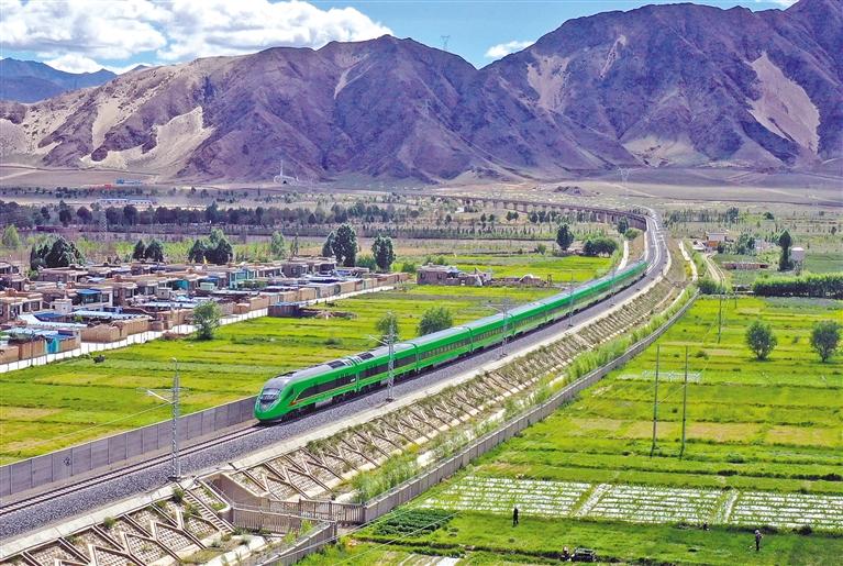 當(dāng)前,全區(qū)公路通車總里程達(dá)到12.14萬公里,鐵路通車?yán)锍?359公里,國(guó)際國(guó)內(nèi)航線169條……西藏交通從無到有、從通達(dá)到通暢、從行程到旅程,從牛運(yùn)馬馱的原始交通發(fā)展到公路、航空、鐵路的綜合立體現(xiàn)代交通運(yùn)輸體系?!皟陕贰本裨谛聲r(shí)代更加發(fā)揚(yáng)光大、凝聚人心!
