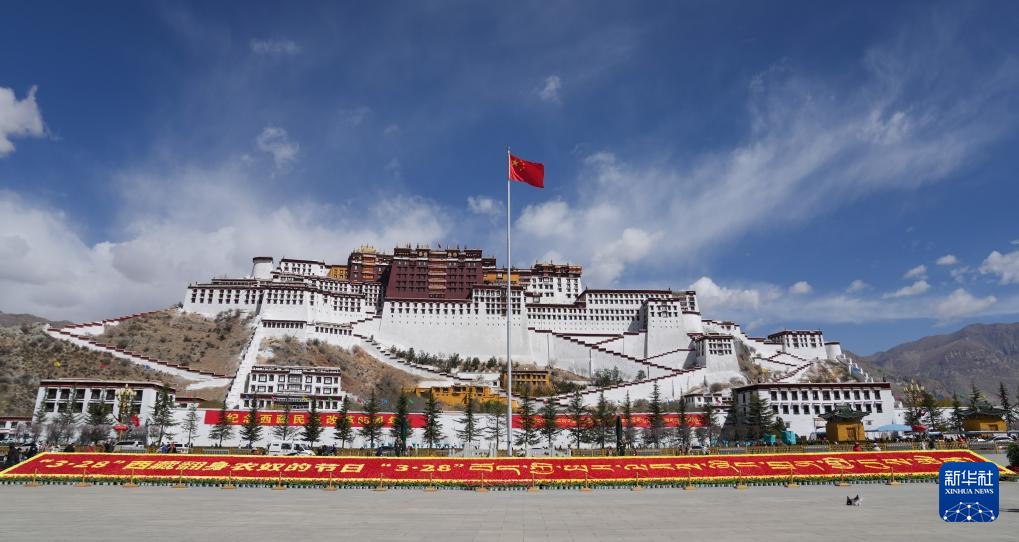 3月28日,拉薩布達(dá)拉宮廣場舉行升旗儀式。新華社記者 張汝鋒 攝