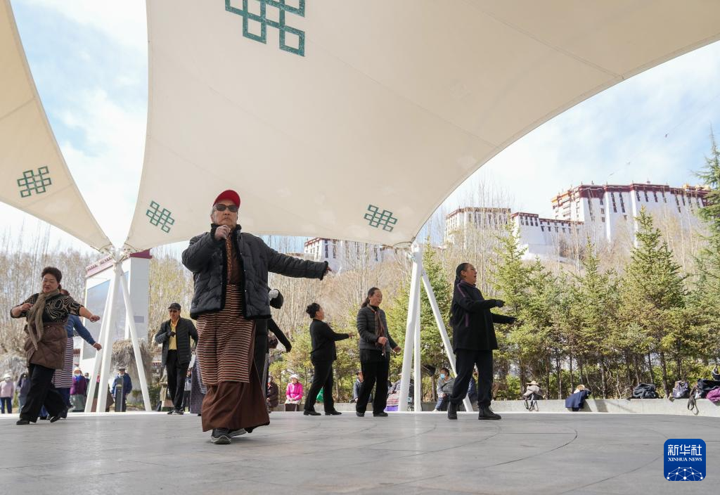 3月28日,群眾在拉薩市宗角祿康公園內(nèi)跳舞,慶祝西藏百萬農(nóng)奴解放65周年。新華社記者 丁汀 攝