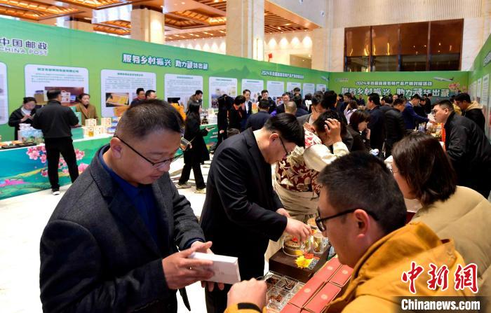 圖為高原農(nóng)特產(chǎn)品產(chǎn)銷對接活動(dòng)現(xiàn)場,各省郵政公司有關(guān)負(fù)責(zé)人與企業(yè)對接。李林 攝