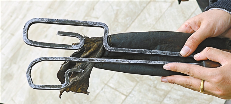 圖為八蓋鄉(xiāng)日卡村糧倉的木鎖。