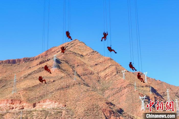 比賽現(xiàn)場,消防員運用一對一掛接救援技術(shù)將被困者安全下放至地面。姚天銳 攝