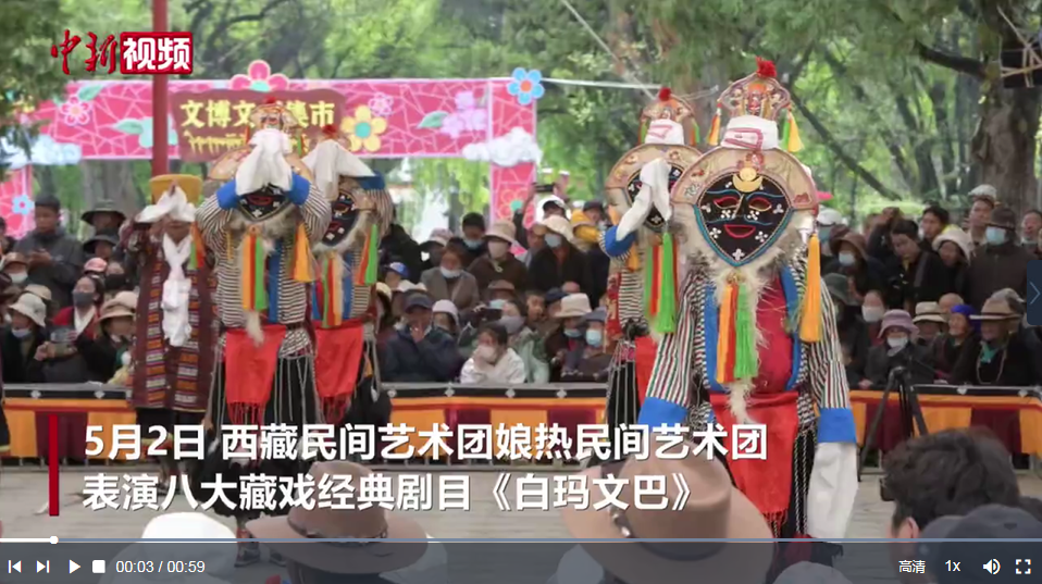 5月2日,西藏民間藝術(shù)團(tuán)娘熱民間藝術(shù)團(tuán)表演八大藏戲經(jīng)典劇目《白瑪文巴》?!拔逡弧奔倨?,“經(jīng)典劇目進(jìn)景區(qū) 特色演出進(jìn)劇院”惠民文藝演出在羅布林卡進(jìn)行,吸引市民游客爭(zhēng)相觀看。藏戲集說唱、表演、歌舞、文學(xué)于一體,有著600多年歷史,被譽(yù)為藏文化的“活化石”。(李林 制作 劉鵬)