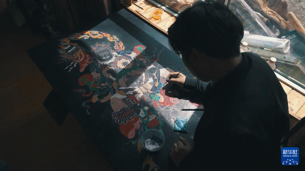“漆畫的表現(xiàn)是自由的、包容的,可以實現(xiàn)唐卡想要的多種效果!”隨著學(xué)習深入,仁青郎加對唐卡漆畫的理解更深了一分。