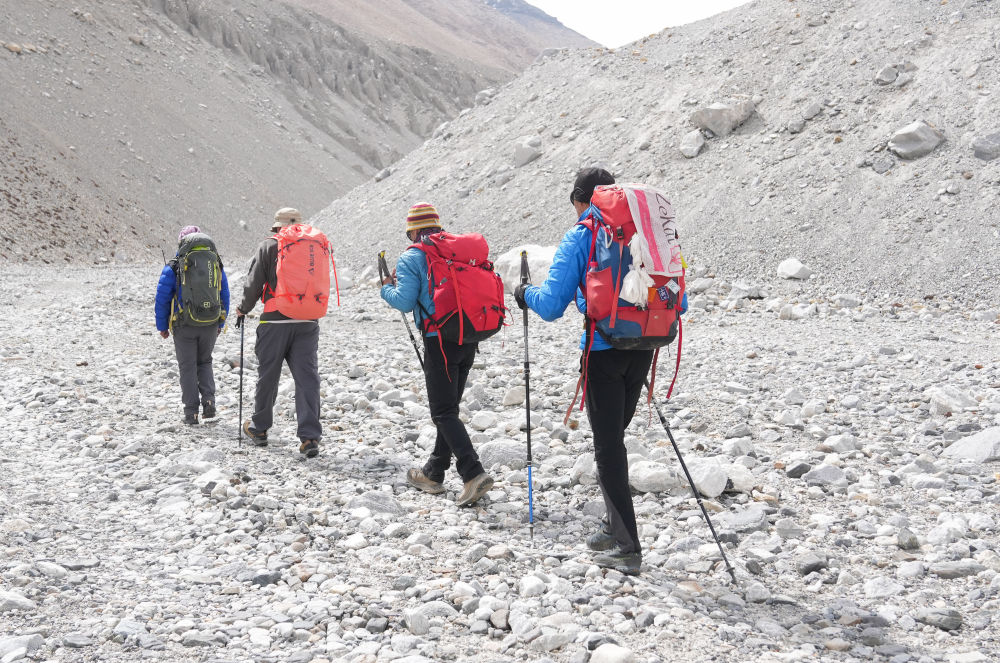 德諾埃爾兄弟和隊友們一起離開珠峰登山大本營,出發(fā)前往更高海拔的營地(5月18日攝)。新華社記者 丁汀 攝