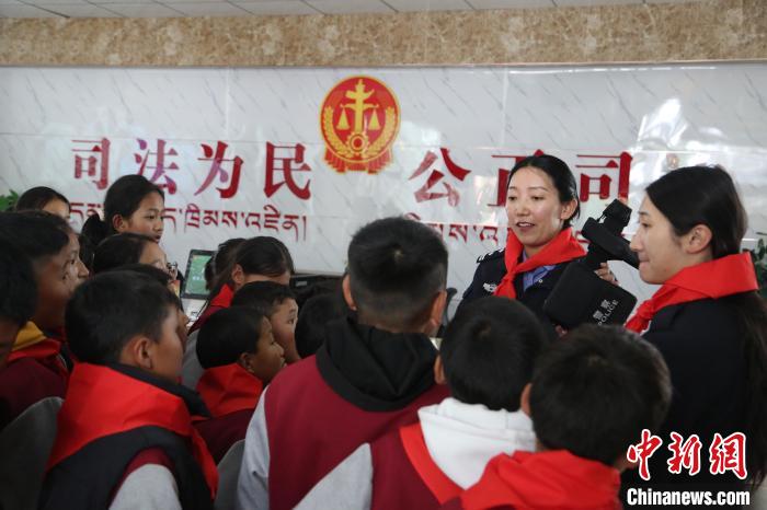 圖為法院干警們正在為學(xué)生們展示司法警用裝備。倫珠澤仁攝