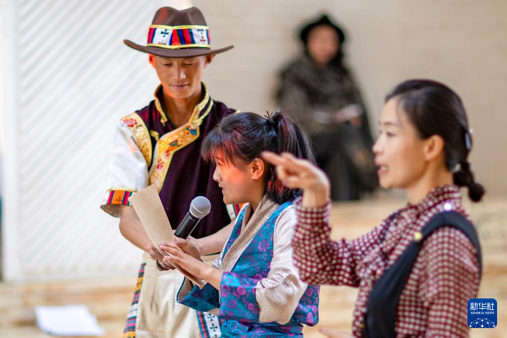 6月5日,拉薩市特殊教育學(xué)校的孩子們?cè)谛聲l(fā)布現(xiàn)場表演舞蹈。新華社發(fā)(旦增努布 攝)