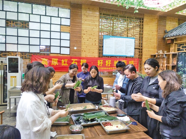 日喀則市行政審批和便民服務(wù)局組織開展共聚“民族餐”活動(dòng),各族干部在一起包粽子。