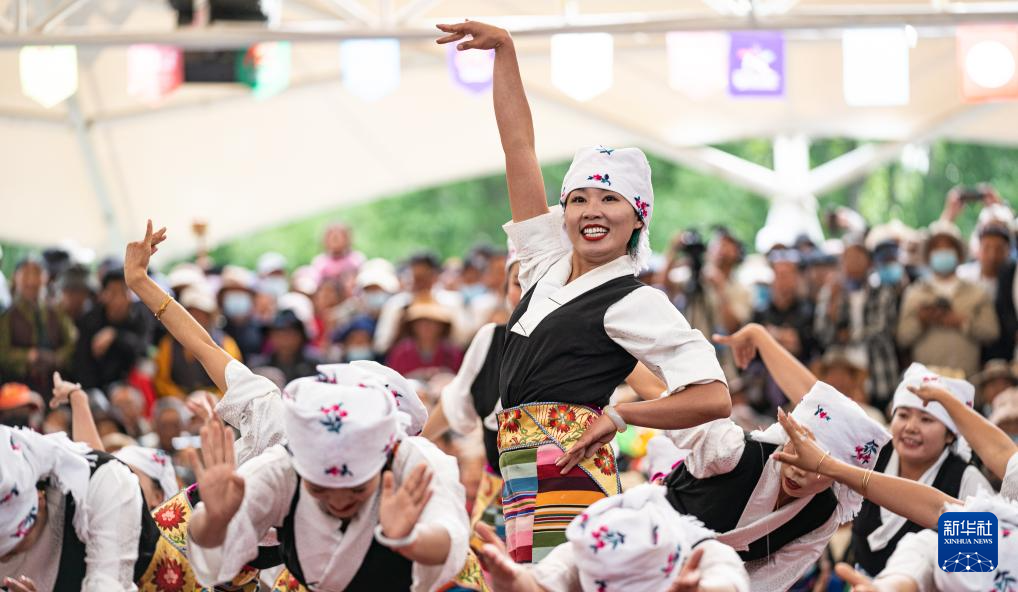 6月14日拍攝的第二屆拉薩鍋莊舞大賽現(xiàn)場。新華社記者 丁增尼達 攝