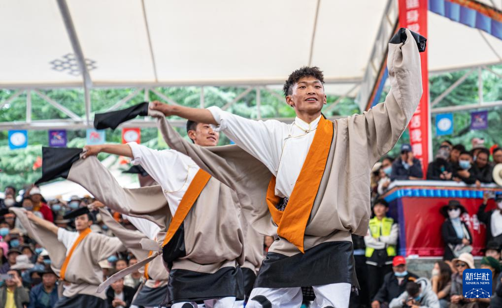 6月14日拍攝的第二屆拉薩鍋莊舞大賽現(xiàn)場。新華社記者 黃智琪 攝