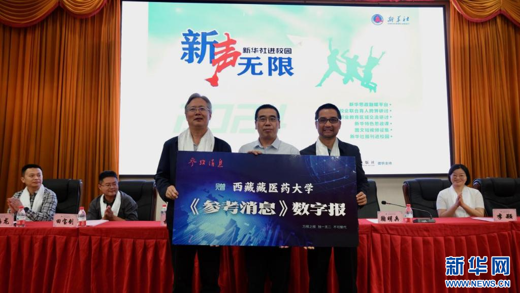 20日,“新聲無限——2024年新華社進(jìn)校園活動(dòng)”在西藏藏醫(yī)藥大學(xué)舉行。新華社參考消息報(bào)社向西藏藏醫(yī)藥大學(xué)贈(zèng)閱了《參考消息》數(shù)字報(bào)。參考消息報(bào)社總編輯陶德言,新華社西藏分社分黨組成員、副社長林建楊和西藏藏醫(yī)藥大學(xué)黨委書記、副校長鞠明兵致辭,西藏藏醫(yī)藥大學(xué)黨委委員、副校長于廣琮主持活動(dòng)儀式,參考消息報(bào)社專題室主任田寶劍 與到場師生進(jìn)行面對(duì)面分享交流。