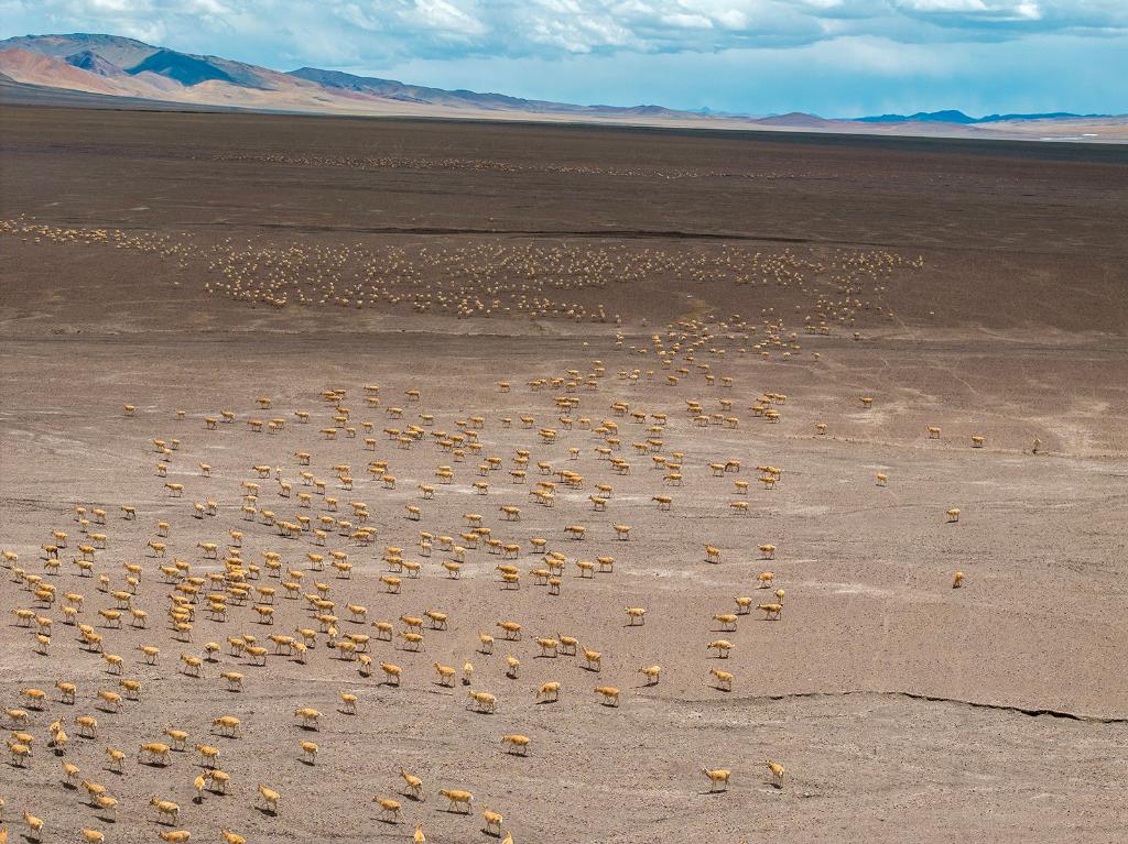 2024年5月10日,在羌塘國家級自然保護區(qū),大群懷孕的雌性藏羚羊開始集結(jié)成群,向產(chǎn)羔地遷徙。