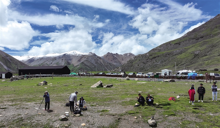 “眼前的景色如此浩瀚,無論我們?nèi)绾闻?,都無法將其完全收入眼底;手中的相機(jī)快門不停地按下,卻總感覺無法捕捉到每一處細(xì)節(jié)的美麗;社交媒體上的照片和視頻,雖然已經(jīng)分享了無數(shù),但總覺得還有更多美好未能展現(xiàn)。言語在這一刻顯得如此蒼白無力,無法完全傳達(dá)我們面對美景時(shí)的激動(dòng)心情。”這是河南游客張曉明和劉芳夫婦對薩普雪山的贊美。置身于這絕美的畫卷中,一聲聲驚嘆,是他們對大自然鬼斧神工的贊美,也是他們內(nèi)心震撼的真實(shí)寫照。