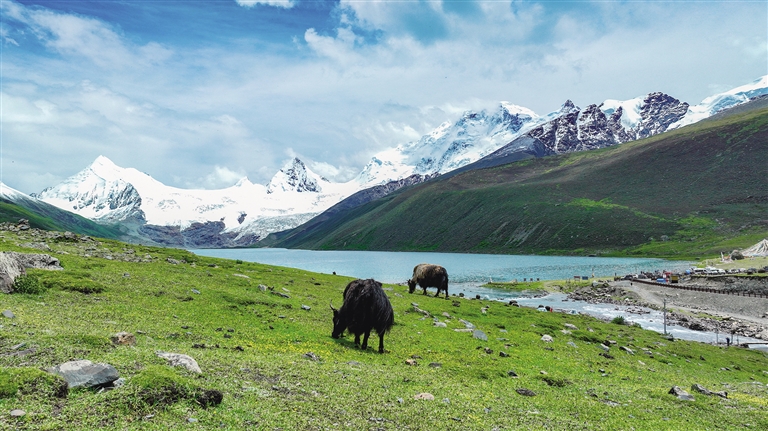 薩普雪山,坐落于那曲市比如縣羊秀鄉(xiāng)的普宗溝深處,是大自然的杰作。這座壯麗的雪山腳下,冰川如同時(shí)間的印記,靜靜流淌;湖泊如鏡,倒映著天空的純凈與雪山的威嚴(yán);廣闊的草場綠意盎然,牛羊成群,和諧共生。這里的景致宛如人間仙境,美得令人窒息,讓無數(shù)游客和攝影愛好者神往。